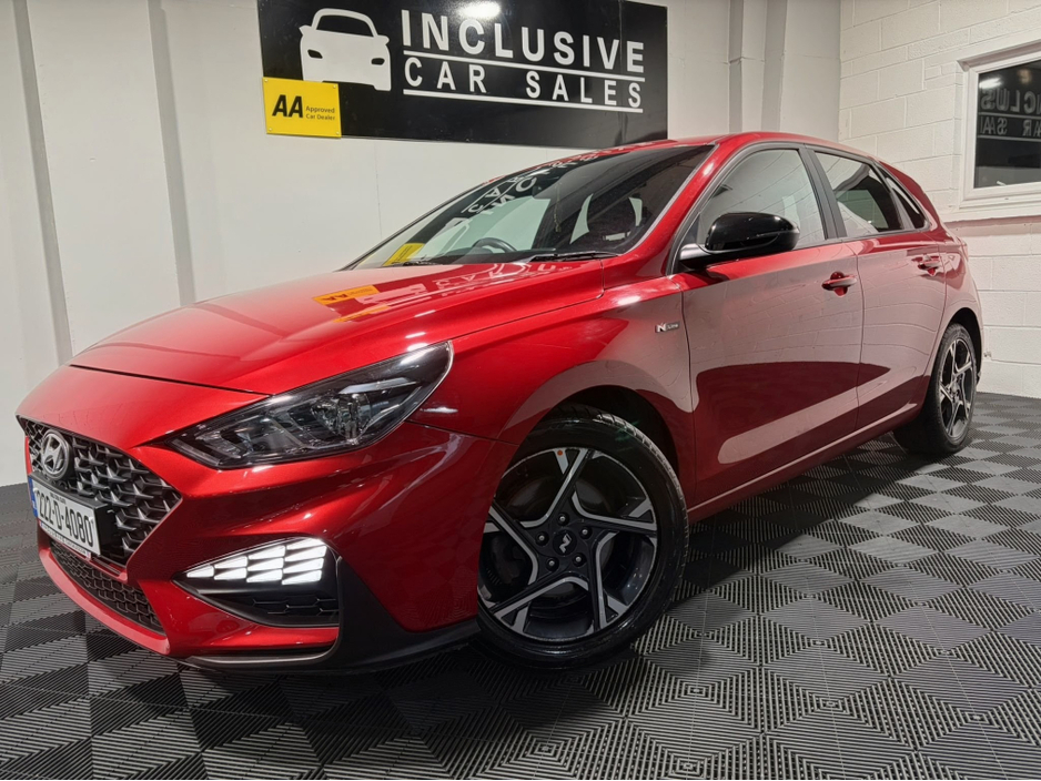 2022 HYUNDAI I30 1.0 PETROL DELUXE NLINE SPEC IN METALLIC RUBY RED WITH EXTRAS SPORTS SEATS WITH LEG REST AND EMBOSSED NLINE DESIGN REAR PRIVACY GLASS HYUNDAI TOUCH SCREEN MEDIA UNIT WITH APP... -