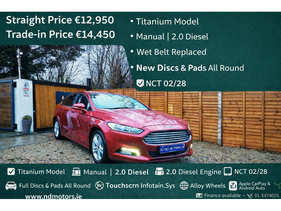 Straight Price €12,950 Trade-in Price €14,450 This 2020 Ford Mondeo Titanium comes in excellent condition throughout and has been very well maintained. Wet belt done at 187km. It leav... -